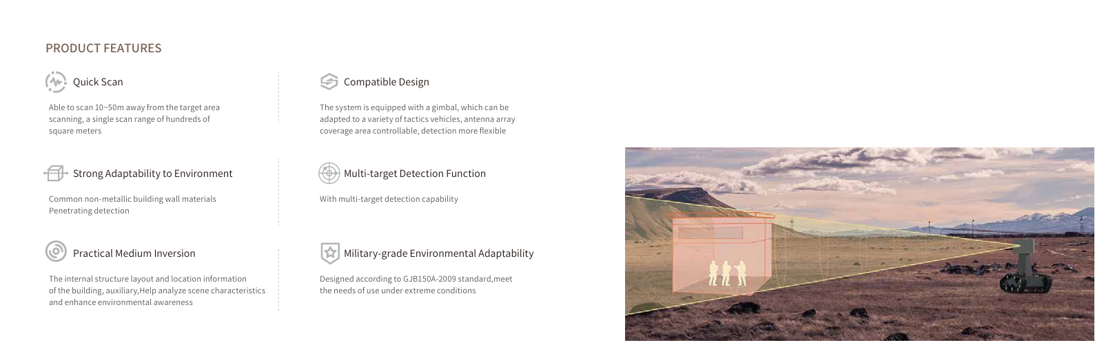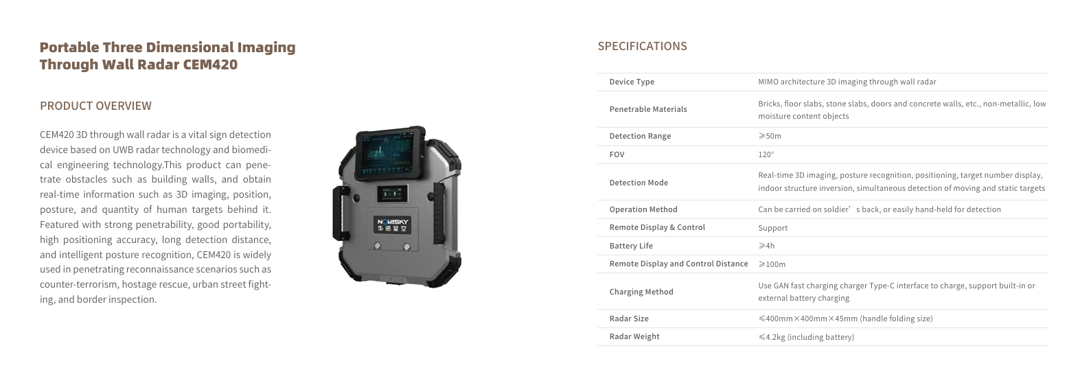 Novasky Technology Company Limited by Shares was established in 2006. The company focuses on electromagnetic detection, sensing and control technology, and provides product and system integration services for anti-terrorism, search&rescue, high-end security and automotive safety. At present, the company has subsidiaries in Beijing and Shanghai, and R & D centers in Changsha, Chengdu and Xi'an. Novasky has advanced scientific and technological talents and technologies inthe fields of radar, optoelectronics, software and system engineering.With years of technology accumulation, the company masters key technology including weak life signal detection and tracking algorithms, ground complex environment target detection and tracking algorithm, low-slow small drone detection and tracking algorithm, multi-source perception fusion, electronic reconnaissance and confrontation,etc. Focusing on the vision of “building a safe world”, Novasky has developed core products and solutions for emergency rescue, counter-terrorism, judicial security, military defense industry and other fields. Novasky is a professional products, solution and services provider in the fields of defense, government and industry informatization. With more than 10 years of continuous scientific and technological innovation, the company forms a series of military&civilian dual-use products. In the government and industry markets, we provides a complete set of systems and solutions for customers such as firefighting dep, public security dep., armed police, earthquake rescue team, judicial dep, petrochemical enterprise, airport and nuclear powerplant etc. In the military defense industry market, relying on core technology, the company committed to providing advanced products, systems and solutions for battlefield joint search and rescue, special operations, battlefield reconnaissance, and electronic countermeasures. In the future, NOVASKY will continue to be guided by "innovating to development, developing for innovation" and adhere to independent innovation and win-win cooperation to form a business ecology of "industrial + technology + capital" coexisting and benign development , with industrial operation as the main body and technological innovation and capital management as the two wings. Based on intelligent perception and control, the company will keep promoting the development of global security system and industrialization of unmanned platforms.
